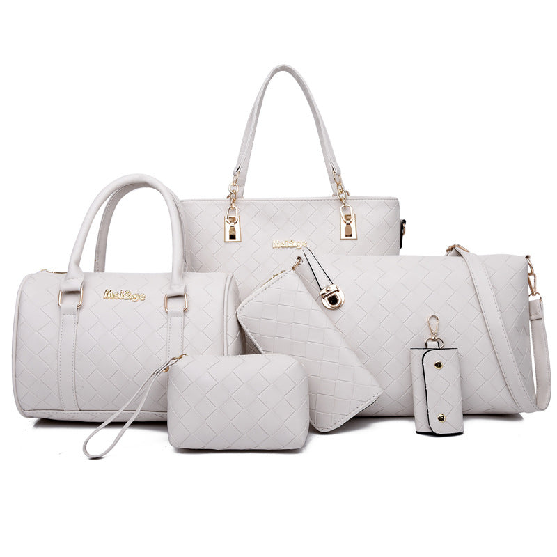Fabricat din material sintetic premium, setul este rezistent, ușor și simplu de întreținut. Cele șase piese incluse oferă versatilitate pentru orice ocazie, incluzând o geantă de umăr, o geantă crossbody, o geantă tote, un portofel, un plic și o mini-poșetă, ideale pentru organizare eficientă.