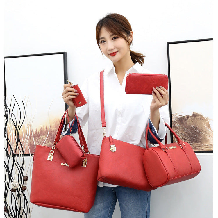 Fabricat din material sintetic premium, setul este rezistent, ușor și simplu de întreținut. Cele șase piese incluse oferă versatilitate pentru orice ocazie, incluzând o geantă de umăr, o geantă crossbody, o geantă tote, un portofel, un plic și o mini-poșetă, ideale pentru organizare eficientă.