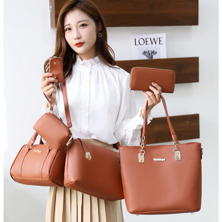 Fabricat din material sintetic premium, setul este rezistent, ușor și simplu de întreținut. Cele șase piese incluse oferă versatilitate pentru orice ocazie, incluzând o geantă de umăr, o geantă crossbody, o geantă tote, un portofel, un plic și o mini-poșetă, ideale pentru organizare eficientă.