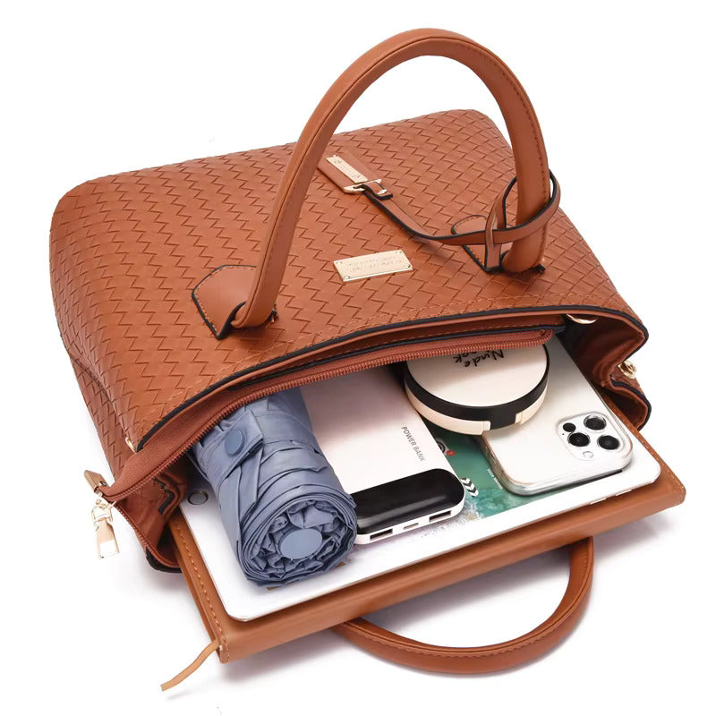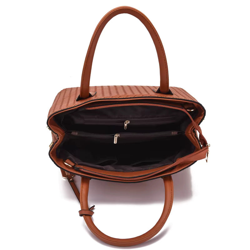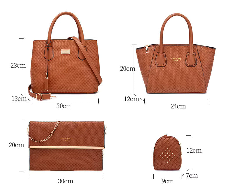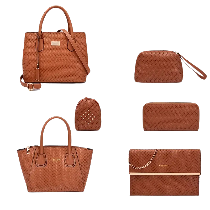 Fabricat din material sintetic premium, setul este rezistent, ușor și simplu de întreținut. Cele șase piese incluse oferă versatilitate pentru orice ocazie, incluzând o geantă de umăr, o geantă crossbody, o geantă tote, un portofel, un plic și o mini-poșetă, ideale pentru organizare eficientă.